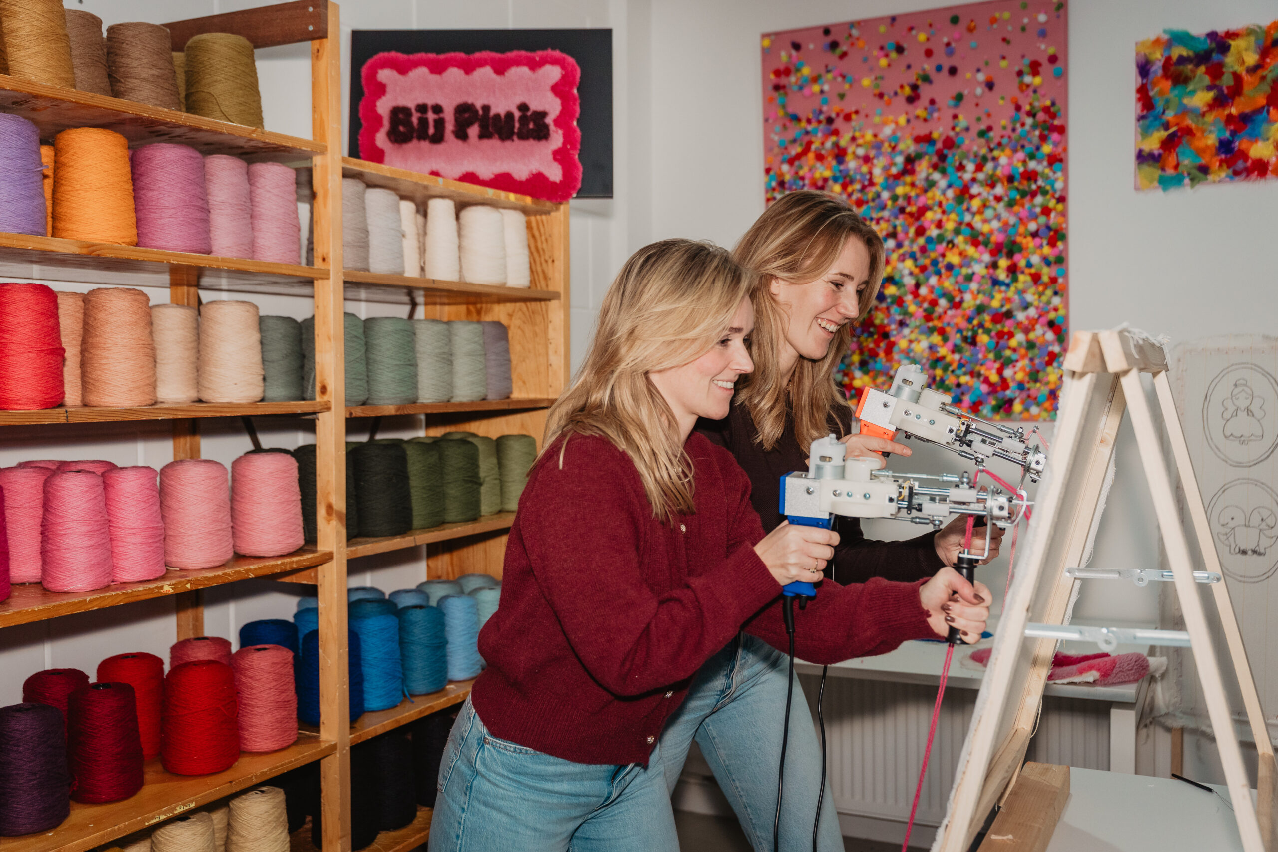 Net na de kerst een workshop gevolgd bij Pluis en het was onwijs leuk! We begonnen met goede uiteg van Iris en Esmee, die ook alles voorbereid hadden. De machines stonden klaar, onze canvassen hingen klaar en er waren lekker snackies voor als je tussendoor even een kleine pauze wilde.